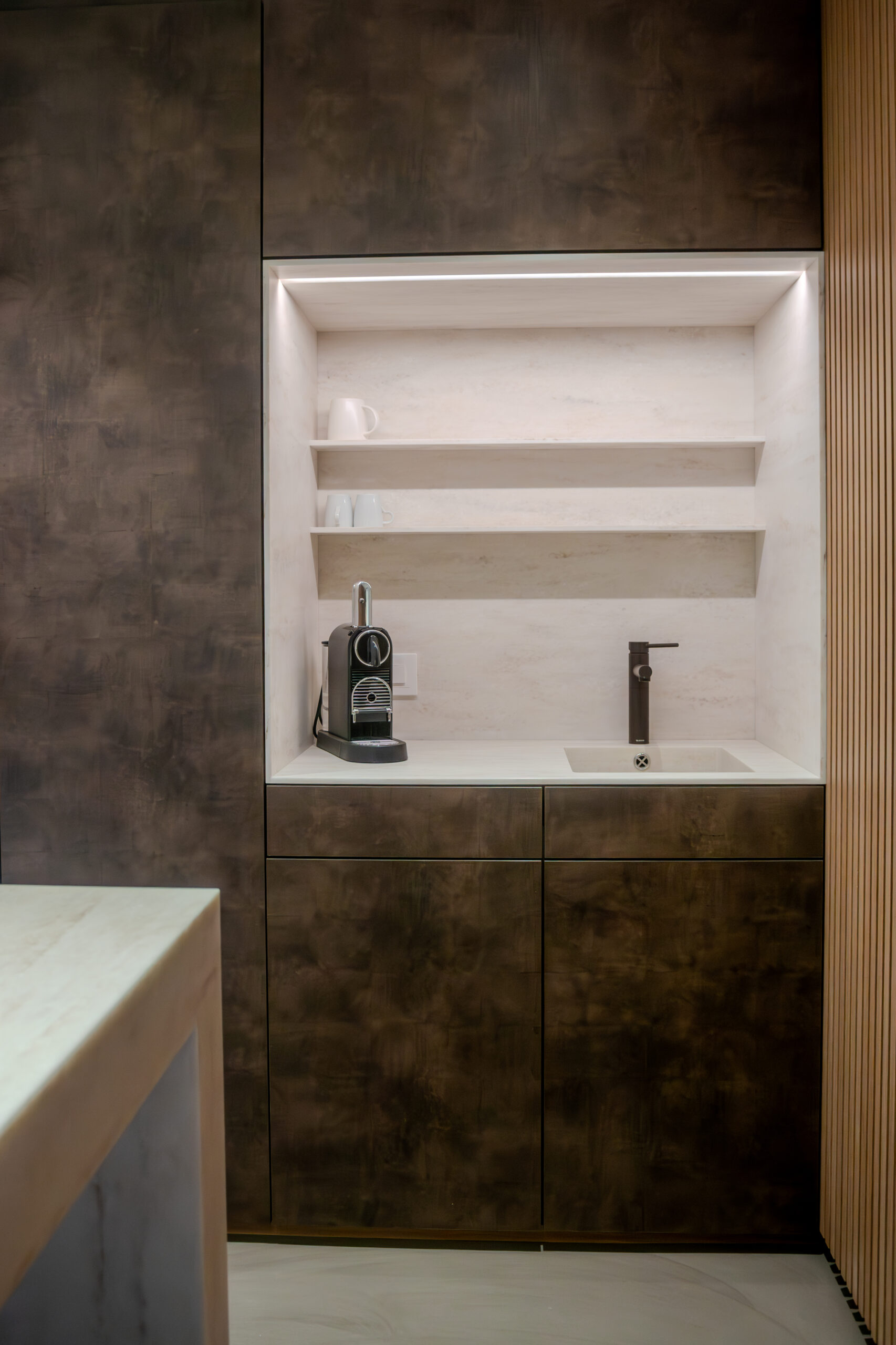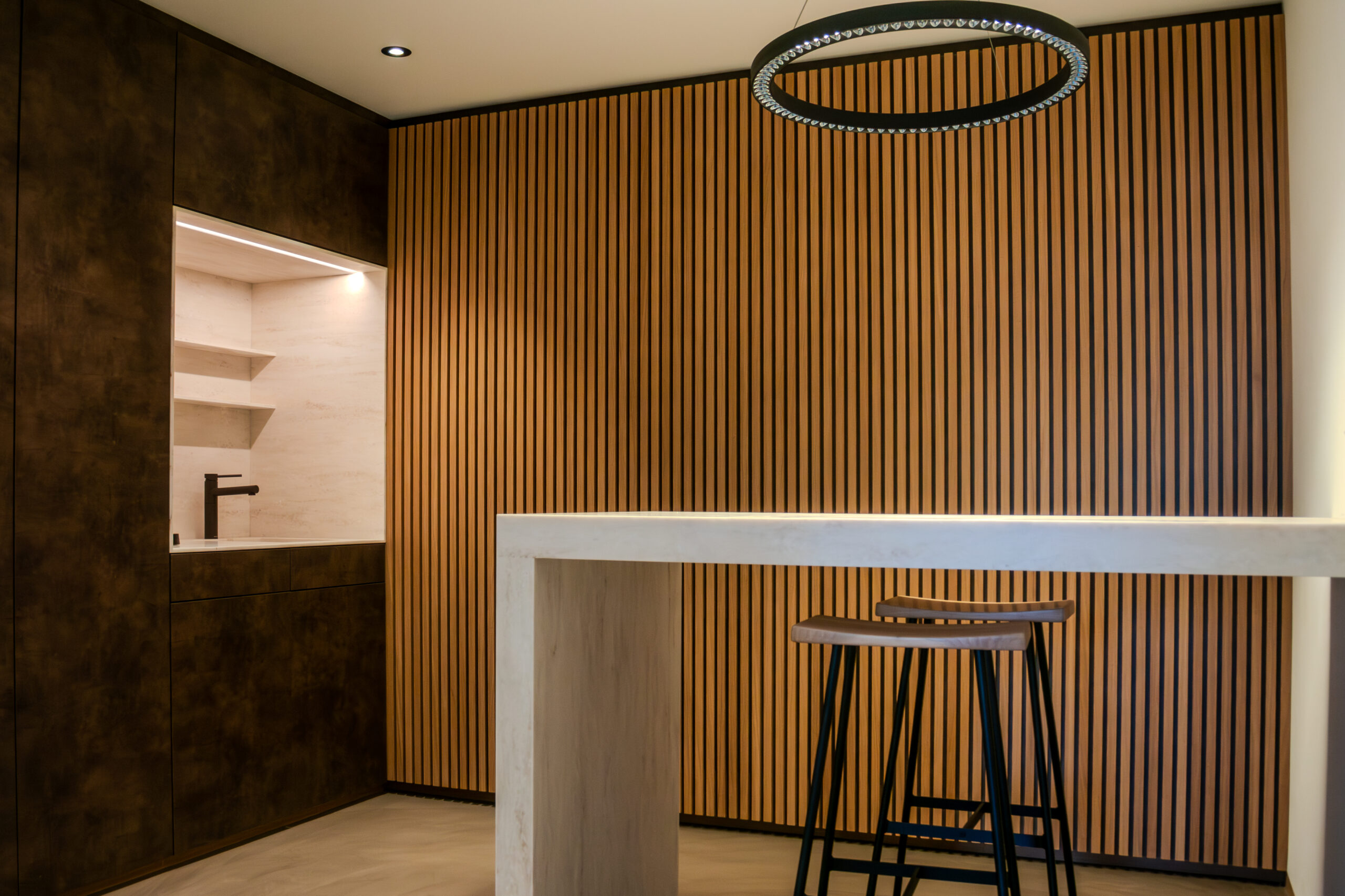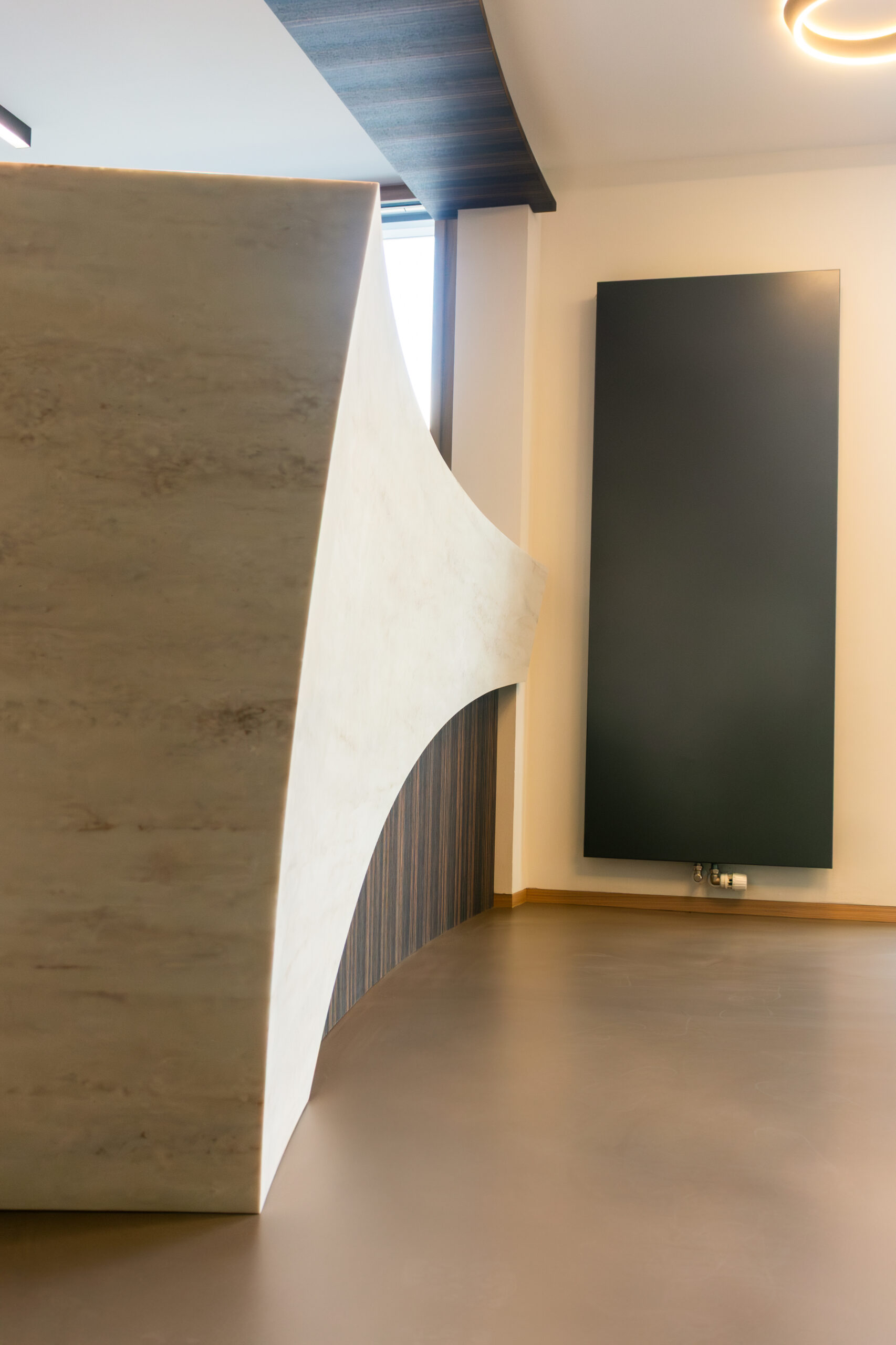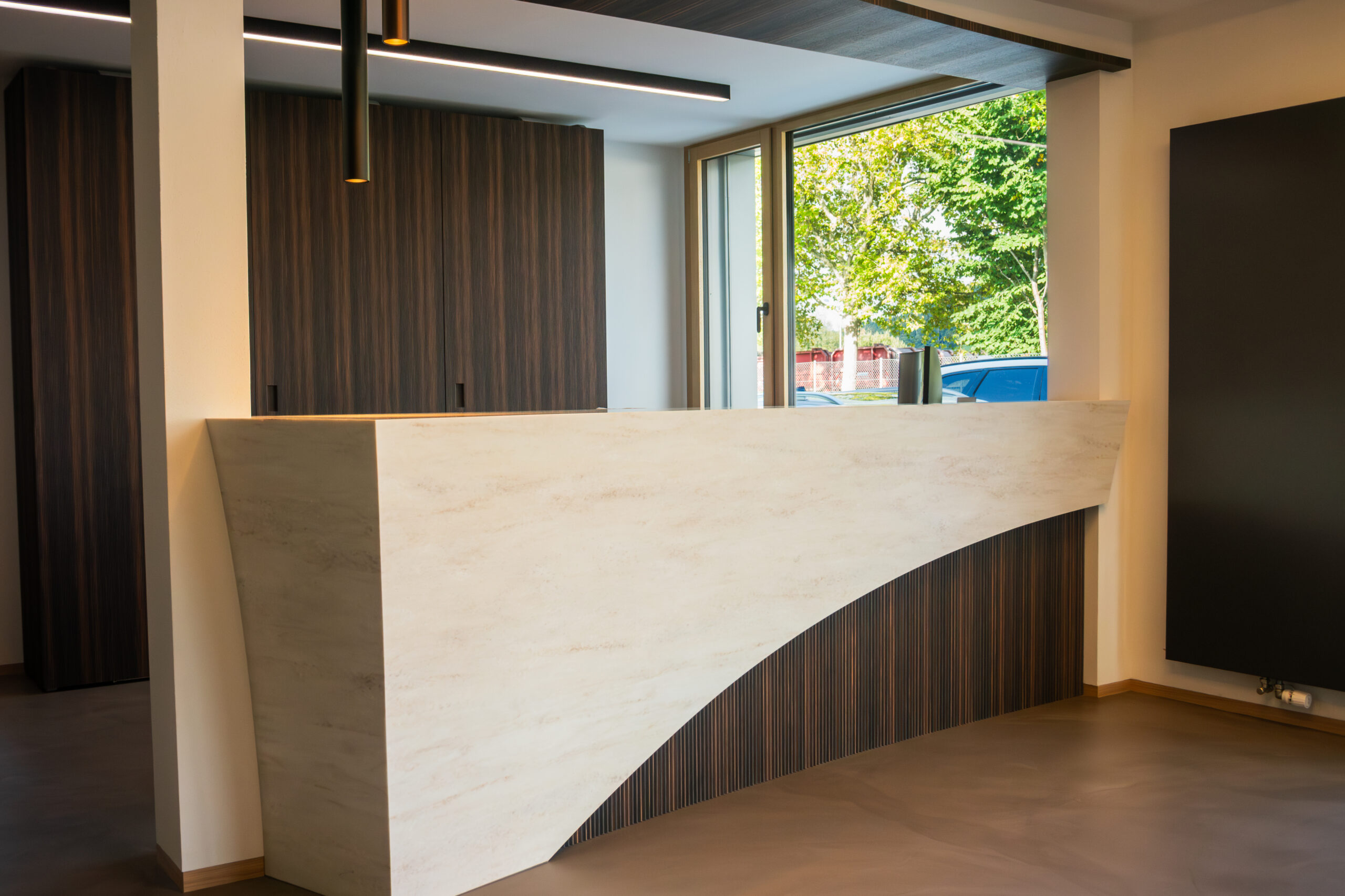 Bureaux administratifs Minnig SA Lieu Bulle Catégorie Agencement intérieur Date 2025 Réalisations Réception, cuisinette, table réunion, meuble lavabo Photos Minnig SA / Inventaire SA Projet & fabrication Minnig SA
